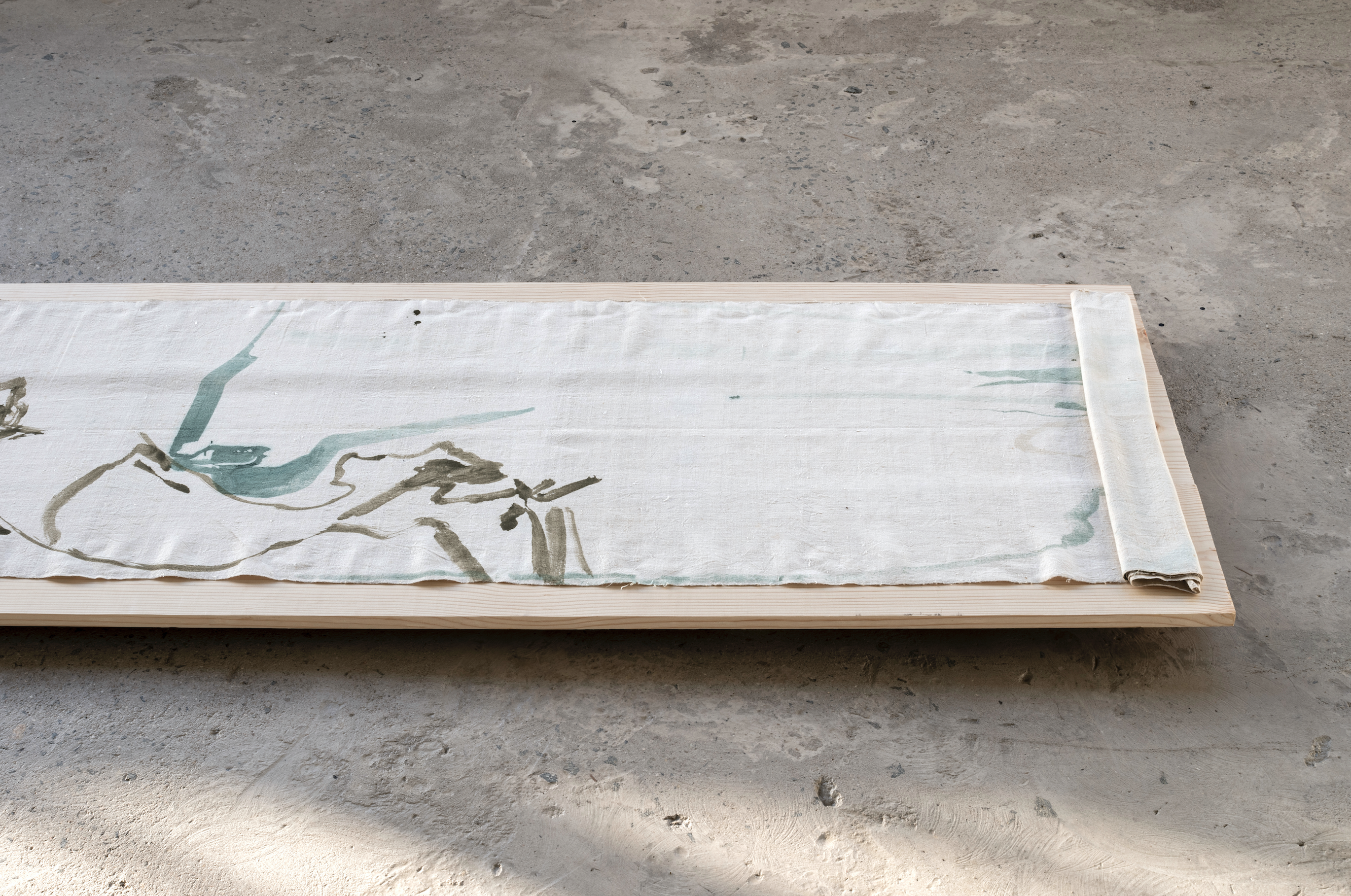 Pigments on raw hand-crafted linen, 888 x 60 cm